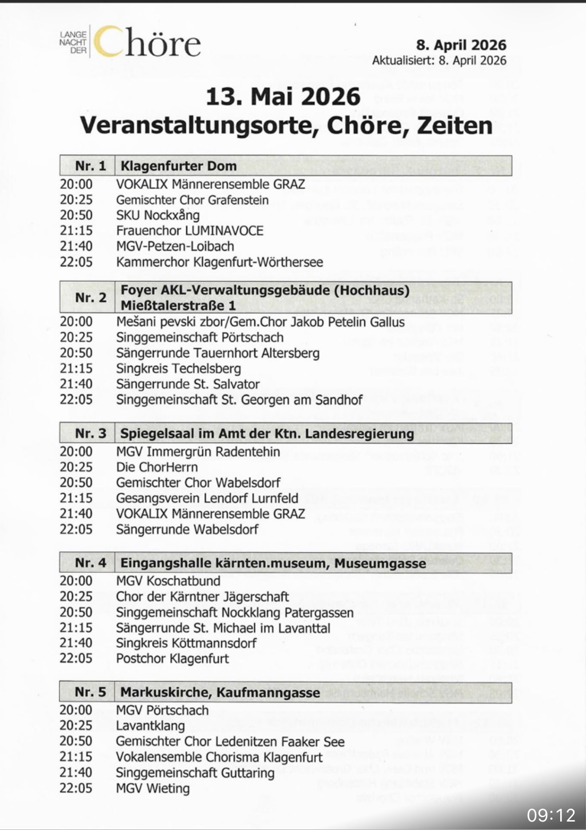13. Mai - Lange Nacht der Chöre Klagenfurt 2
